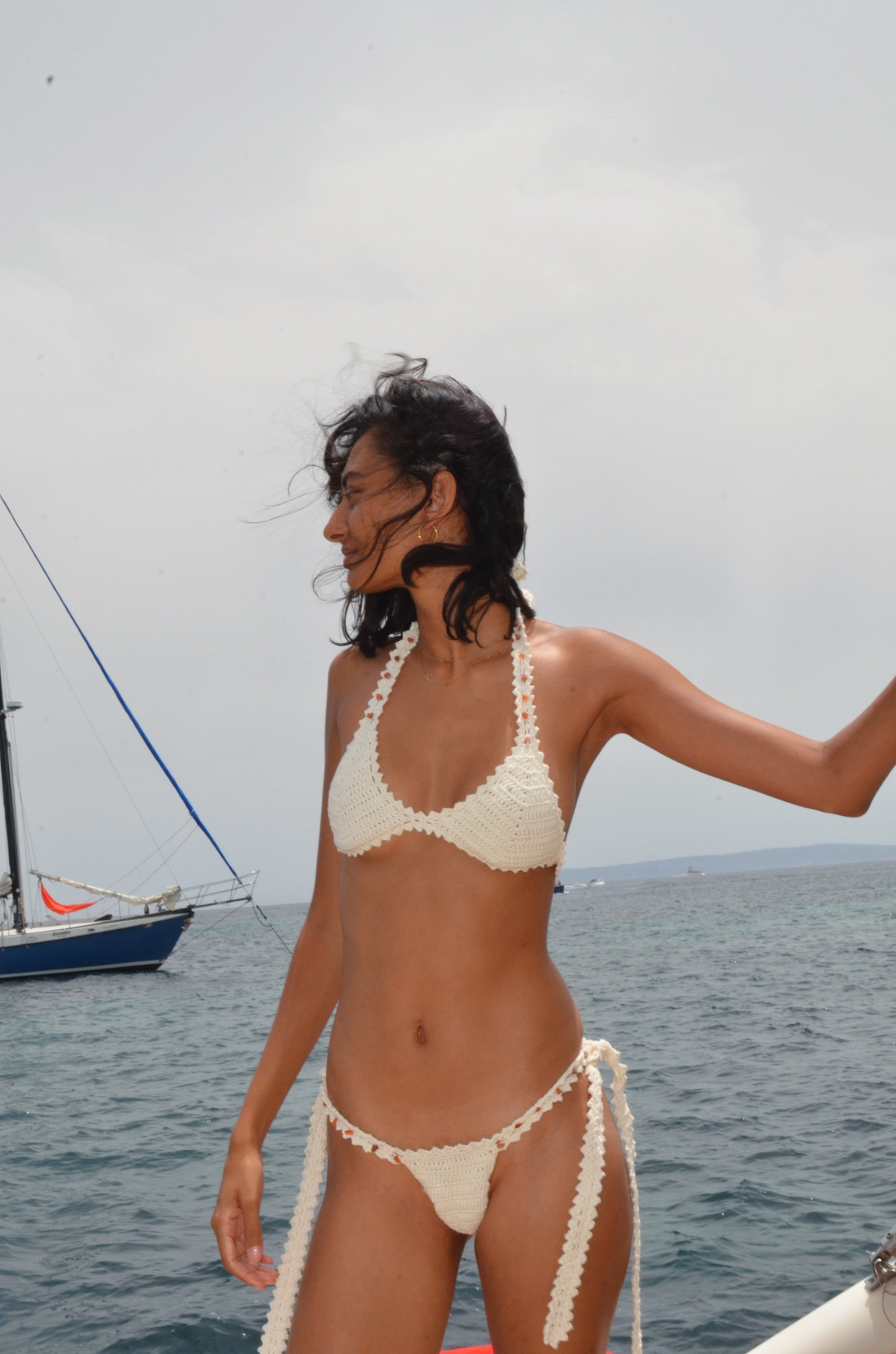 ◈ Calcinha de biquíni com amarração lateral ajustável.